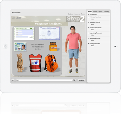 This 30 module mobile/browser-based training was developed using Articulate Storyline. The E-learning for volunteers and staff, covers every job title in the shelter and can be delivered in extreme conditions for fast, effective and efficient training. Click the images above to see the All Staff Training.